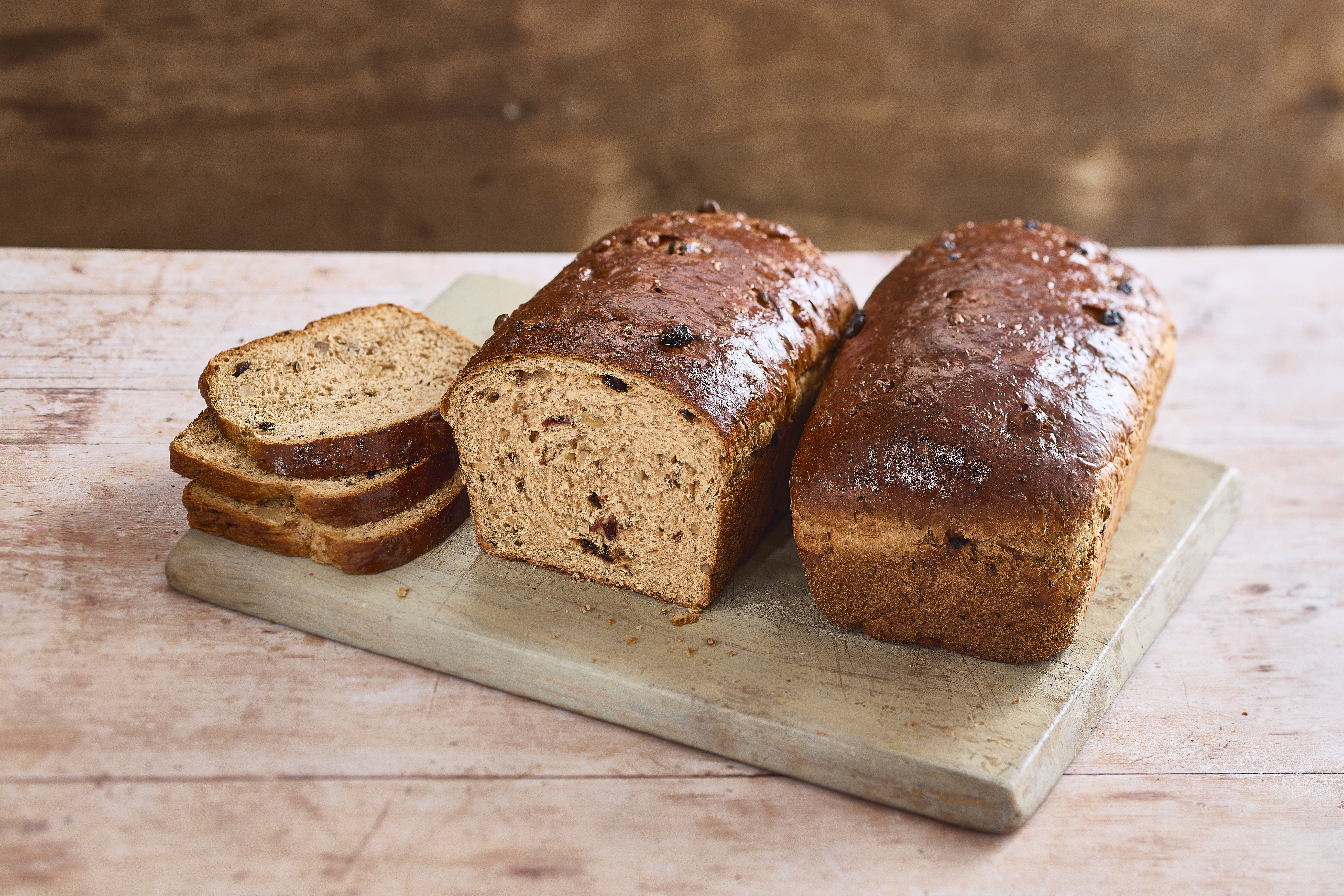 This sweet loaf is studded with walnuts, brazil nuts, sultanas, and cranberries, and made with malted brown flour for a nutty flavour and soft texture. Perfect for serving with a ploughman’s or simply toasting and buttering for breakfast.