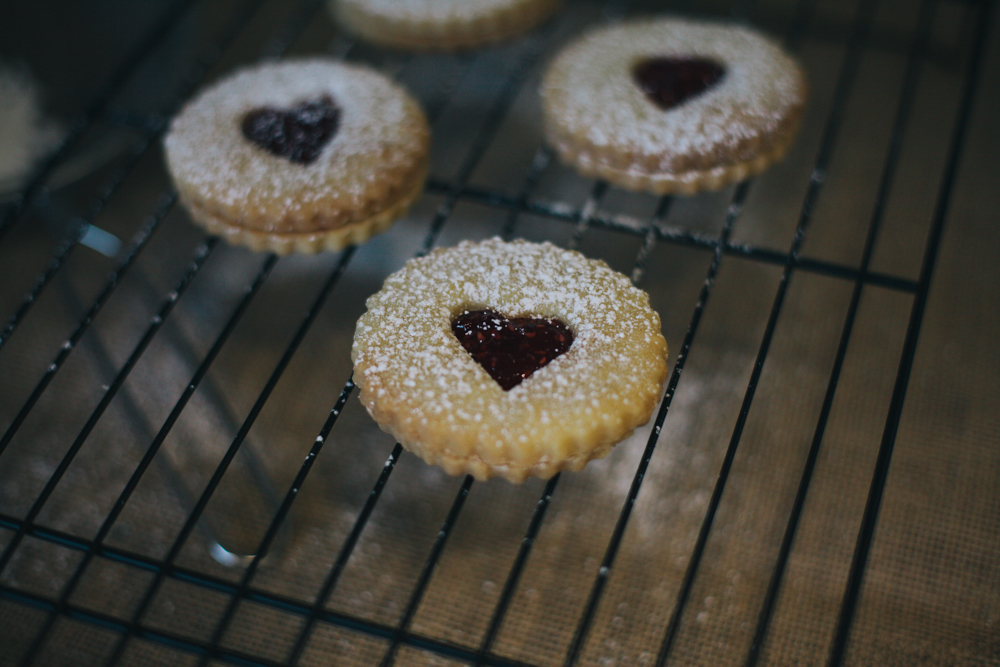 Sandwich the biscuits with the raspberry filling then dust with icing sugar. Once filled the biscuits are best eaten the same day. The unfilled biscuits can be stored in an airtight container and used within 4 days.